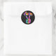 Adesivo redondo Groovy apresenta mão do sinal da paz em estilo retrô com tingimento em preto. Use como selo para sacolas de favores, envelopes e presentes.