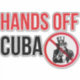 O design do texto “Mãos Fora de Cuba” apresentado em um estilo tipográfico ousado e limpo. Este design reflete temas de conscientização, expressão e perspectiva global, tornando-o uma peça de declaração simples, porém impactante.