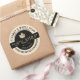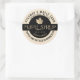 Personalize esta etiqueta de xarope de mapa com o nome comercial, o local, o grau e o volume (lista incluída de conversões nos EUA e métricas para tamanhos populares). Maçal de ouro metálico central em círculo negro. Nome do estado no texto curvo próximo à parte inferior do rótulo. Fundo de marfim.