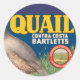 Rótulo da caixa de fruta para a Marca de Quail Contra Costa Bartlets da Califórnia