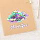 Vinheta-vinheta de corte personalizado com uma imagem de moedas de plástico púrpura, verde e dourado e de "Mardi Gras" em roxo francês. Veja toda a coleção do Mardi Gras Sticker nos CONVITES | Seção Stickers & Labels