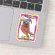 Este cachorro está pronto para celebrar Mardi Gras com uma máscara colorida e chapéu!