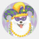 Cachorro esquimó americano bonito, vestido com máscara festiva, chapéu de gester e miçangas, pronto para diversão em Mardi Gras ou em qualquer outro momento. presente de excelente para você e sua família e amigos apaixonados por Eskie.