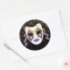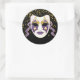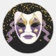 Este adesivo redondo de grande tamanho é mostrado numa festiva máscara de celebração Mardi Gras impressão. Personalize este item ou comprar como está.