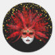 Este adesivo redondo de pequeno tamanho é mostrado em um festivo design de máscara de celebração do Mardi Gras. Personalize este item ou comprar como está.