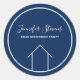 Este adesivo moderno do corretor é personalizado com o nome da sua empresa real sob o nome do agente na tipografia quic. Um desenho minimalista azul e branco marinho de uma casa. Simples adesivo para um agente que trabalha para ajudá-lo a comprar de uma casa.