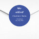 Mudamos a etiqueta do endereço de retorno. Personalize e adicione seu nome e novo endereço. fundo azul marinho, texto branco.