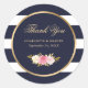 Marinho elegante, obrigado de casamento floral branco e azul listrado, você cai sobre adesivos com cor d'água, flores cor-de-rosa pinceladas e verde dourado. Personalizar facilmente online.
