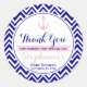 Tendy marinho azul-diafrão com obrigado náutico rosa-bebê -âncora-náutica com adesivos chá de fraldas. O design apresenta um padrão de fevron marinho azul e branco no fundo, um círculo branco, uma âncora náutica rosa bebê e seu texto personalizado em azul marinho e rosa-bebê.