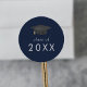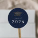Esta classe de boné formando azul-chic de 2025 é perfeita para uma festa de formando moderna. O simples design apresenta a tipografia clássica azul e branca do marinho com um chapéu de graduação de aquarela preta e dourada. Personalize seu adesivo de favor com o ano de aula.