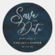 Marinho Luster Dark Blue Watercolor Design, com tipografia Silver Sparkle e bela textura de fundo de aquarela. Com Fontes Modernas De Script Chic. Uma moda e estilo luxuoso - Casamento personalizado Salve os adesivos de data! Veja meu compro para ver a suíte de casamento inteira para este design!