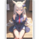 Garota elegante em uma academia de marinho nítida, cabelos prateados fluindo e olhos azuis brilhando, capturados no estilo de anime kawaii com sombreado na moda ousado.