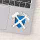 Este adesivo de vinil apresenta o logotipo clássico do martelo de rocha da geologia, decorado como o saltire azul e branco da Escócia. Coloque este adesivo no seu laptop!