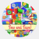 Um botão vibrante alegre e um design com tesoura. Transforme algo antigo em algo novo. Isto é realmente uma coisa sensata e divertida de se fazer! Artesanatos, personalize este adesivo com o texto de sua escolha.