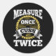 Design único de madeira com torção humorística, inspirado pelo ditado Medida Uma, Corte Duas Vezes. Perfeito para qualquer entusiasta da madeira ou hobbyista.