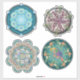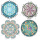 Quatro mandalas requintadas em diferentes estilos, metal tropical, mármore, gravado e azul esmaltado.