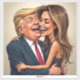 Ilustração animada de Melania Trump abraçando seu marido Donald Trump enquanto eles riem