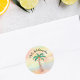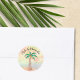 Estes adesivos Mele Kalikimaka são decorados com uma palmeira pintada à mão, decorada com luzes e bolhas num fundo de aquarela. Original Watercolor © Michele Davies.