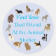Você pode encontrar um amigo excelente no abrigo para animais. Ajude a promover animais de estimação com este círculo de cães de desenho animado em volta do texto "Encontre seu melhor amigo no abrigo animal"