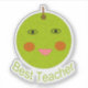 Este adesivo em forma espetacular apresenta uma maçã verde brilhante com um sorriso largo e bochechas vermelhas rosadas. Há texto abaixo da maçã que diz melhor professor.