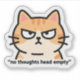 Ilustração engraçada e absurda de meme da internet apresentando um gato de desenho animado com um olhar vazio, legendado "sem pensamentos cabeça vazia".