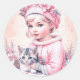 Adesivo Menina Vintage Rosa e Gatinho Natal