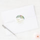 Este adesivo festivo é decorado com folhagem de cor vermelha, verde e dourada e diz Feliz Natal em tipografia de guião. Facilmente personalizável. Original Watercolor © Michele Davies.