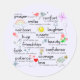 "Esta é a minha oração para vocês: conforto em dias difíceis, sorrisos quando a tristeza invade, arco-íris para seguir as nuvens, risos para beijar seus lábios, pôrs do sol para aquecer seu coração, abraços quando os espíritos sag, beleza para seus olhos verem, amizades para iluminar seu ser, fé para que você possa acreditar, confiança para quando você duvida, coragem para se conhecer, paciência para aceitar a verdade, amor para completar sua vida." Com fundo azul / verde e bolinhas na maioria dos produtos e roupa.