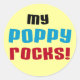 Minhas camisetas Poppy Rocks, cartas, adesivos, sacos para tote, ímãs, botões e outros itens com um design de texto preto, azul e vermelho. Estes itens do My Poppy Rocks são uma forma excelente de mostrar o teu amor pela tua papoila especial!