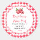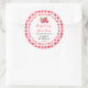 A delightful label for mini raspberry pies featuring a soft raspberry design framed within a delicate lace-style border. The red gingham background adds a cozy homemade bakery feel. Perfect for packaging small pies for gifting, bake sales, or gatherings. Add your name and year for a personal finishing touch. Ideal for Valentine’s Day, holiday baking, or special occasions. A charming way to present your mini pies.