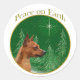 Paz na Terra. Mostre sua razão para a temporada com sua Miniatura Pinscher neste único design de cachorro acentuado com verde e ouro. Vai excelente em um ornamento, cartão de saudação ou adesivo.