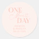 Um ensaio de casamento minimalista janta a favor de adesivo com texto tipográfico que diz "mais um dia". O plano de fundo é cor-de-rosa-claro.