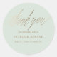 Você vai adorar este elegante e moderno adesivo de favores de casamento que apresenta um vago e vago ouro metálico "Obrigado" em um fundo verde de sábio pálido, acrescentando um toque elegante e pessoal aos seus favores de casamento. Personalize com seus nomes e data de casamento para criar uma manutenção exclusiva para seus convidados. A simples e sofisticada design complementa perfeitamente qualquer tema de casamento, fazer que seja um belo toque final para o seu dia especial.