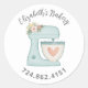 Um doce misturador de cozinha azul com flores decora este adesivo. Personalize-o com seu nome e número de telefone. Projetado para você pelo Blackberry Boulevard.