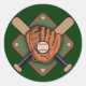 Desenho de luva de baseball, com bola, morcegos cruzados e fundo de diamante de baseball. Cor, t-shirts, suores, cartas, presentes.