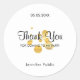 Modelo de roteiro de agradecimento moderno com confete dourado Adesivo redondo clássico e elegante.