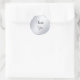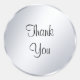 Adesivo redondo clássico e elegante com texto de agradecimento com aparência de prata metálica e caligrafia manuscrita.