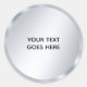 Adesivo Redondo Clássico Elegante Modelo Moderno em Branco com Aparência de Prata Metálico Tendência Adicione Seu Texto.