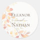 Estes elegantes adesivos redondos clássicos modernos de cor d'água do Boho Autumn Leaves Nascentes apresentam um design delicioso de folhas de cor d'água em cores amarelas, laranja e verdes vibrantes, esticando-se graciosamente na diagonal em cada adesivo. As cores quentes e autóctones capturam a essência da estação, adicionando um toque de beleza natural e charme à sua papelaria e decoração de casamento. A caligrafia decorativa melhora a design, trazendo uma elegância sofisticada que complementa a folhagem artística. Perfeito para selar convites, favorecer bolsas ou adicionar um toque pessoal aos detalhes do casamento, esses adesivos combinam perfeitamente a funcionalidade com um incrível apelo visual, garantindo que seus elementos do casamento sejam coesivos e memoráveis para você e seus convidados.