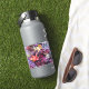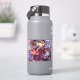 Elegant purple color sticker features an abstract image double exposure abstract of fallen maple leaves on a body of water surface.