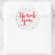 Trendy Chic Obrigado adesivos com fundo pontilhado preto e branco e tipografia vermelha-clara e ousada. Bens bonitos para usar em casamentos, chás de fraldas, festas de aniversário e muito mais!