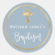 Modern Gold Cross Light Dusty Blue Boy Baptism Round Sticker. This modern baptism favor sticker can be used on wrapped gifts, favor bags and is a great way to thank your baptism or christening guests.