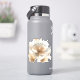 A gorgeous minimalist white and gold color wedding sticker with the name of the bride and groom, and wedding date.