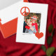 Esta etiqueta de endereço de retorno de feriado moderna apresenta um histórico branco clássico com um sinal de paz moderno em vermelho. **Todas as cores, incluindo símbolos, fundo e texto, são personalizáveis usando a ferramenta design.
