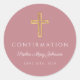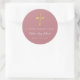 Modern Pink Religious Cross Girl Confirmation Classic Round Sticker.