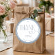 Express your heartfelt gratitude with these minimalist thank you wedding stickers. The elegant blue script font for 'Thank You' conveys a sense of refined charm, while the accompanying names and date add a personal touch. Encased within a soft blue circular border, these stickers are ideal for sealing envelopes, adorning gift bags, or personalizing any item you send to your cherished guests. Let these stickers be a beautiful reminder of your joyous occasion.