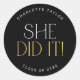Este moderno ouro negro que ela fez é perfeito para uma festa de formando simples. A design apresenta uma elegante tipografia de boho com um toque de estilo sofisticado em preto escuro clássico e ouro amarelo. Personalize seu adesivo de favor com o nome do formando e ano de aula.