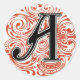Um adorável padrão de espiral em vermelho é o fundo desta letra de safra.