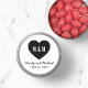 Monograma moderno Salve o adesivo redondo de casamento de data com coração. Personalize-o substituindo o texto do marcador de posição por seus detalhes. Para obter mais opções, como alterar a fonte e seu tamanho, clique no botão "Personalizar". *Observe que a Marca d'água do Zazzle que aparece na visualização de zoom NÃO aparecerá no produto impresso final. © Rosewood e Citrus