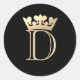 Coroa Monograma em Folha de Ouro Falso Adesivo Redondo Clássico. O design circular torna-o perfeito como um selo de envelope.